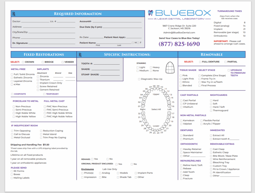 For Physical / Analog Case Subissions, Click the PDF to the right, to download our Rx Form. Include with your shipment.